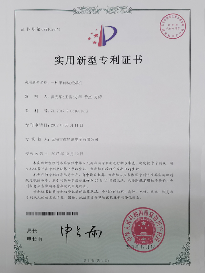 一種半自動(dòng)點(diǎn)焊機(jī)實(shí)用新型專利證書