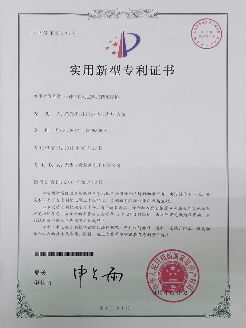 一種半自動點焊機精密焊槍實用新型專利證書