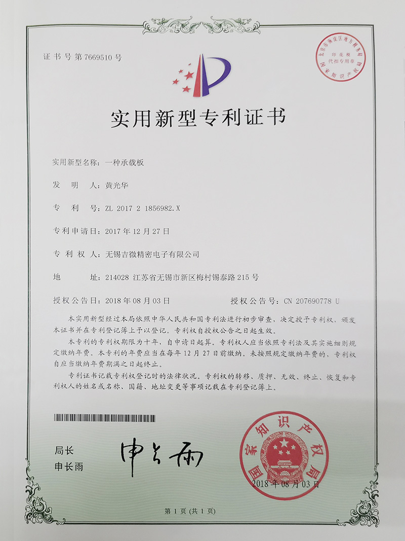 一種承載板實(shí)用新型專(zhuān)利證書(shū)